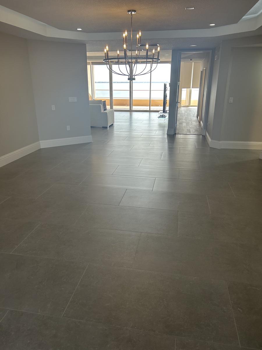 Initially, the flooring design had been 80% hardwood and 20% tile. But after witnessing the water damage storms could bring, the homeowners re-evaluated their choices. They shifted to a 75% tile installation for better resilience without compromising on style.